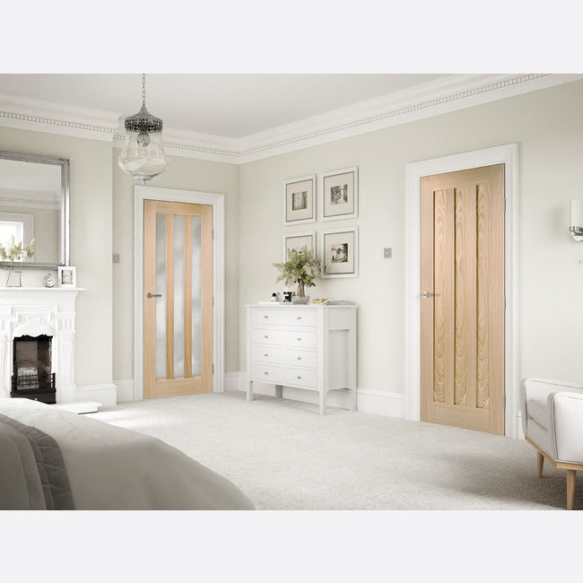 Featuring a simple and elegant design, this door showcases three parallel center panels with a subtle unfinished Oak wood grain. Engineered with a solid core, it ensures durability and stability. The unfinished surface allows for customization according to your preferences, making it a versatile choice for various interior settings.