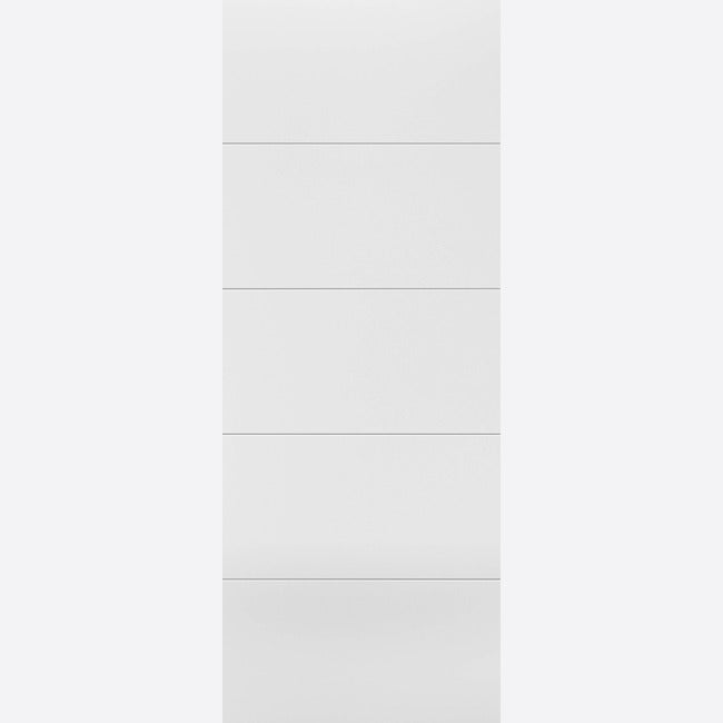 The modern Santandor door boasts a ladder-style design with five panels, offering a contemporary touch to any interior. Finished in white primer, this door is primed and ready for a final top coat, allowing for customization to suit your decor preferences. Its versatile design and panelled construction contribute to a sophisticated and sleek appearance, making it a stylish choice for any space. Standard doors come with a semi-solid core, while FD30 doors are supplied with a solid core for added durability and safety.